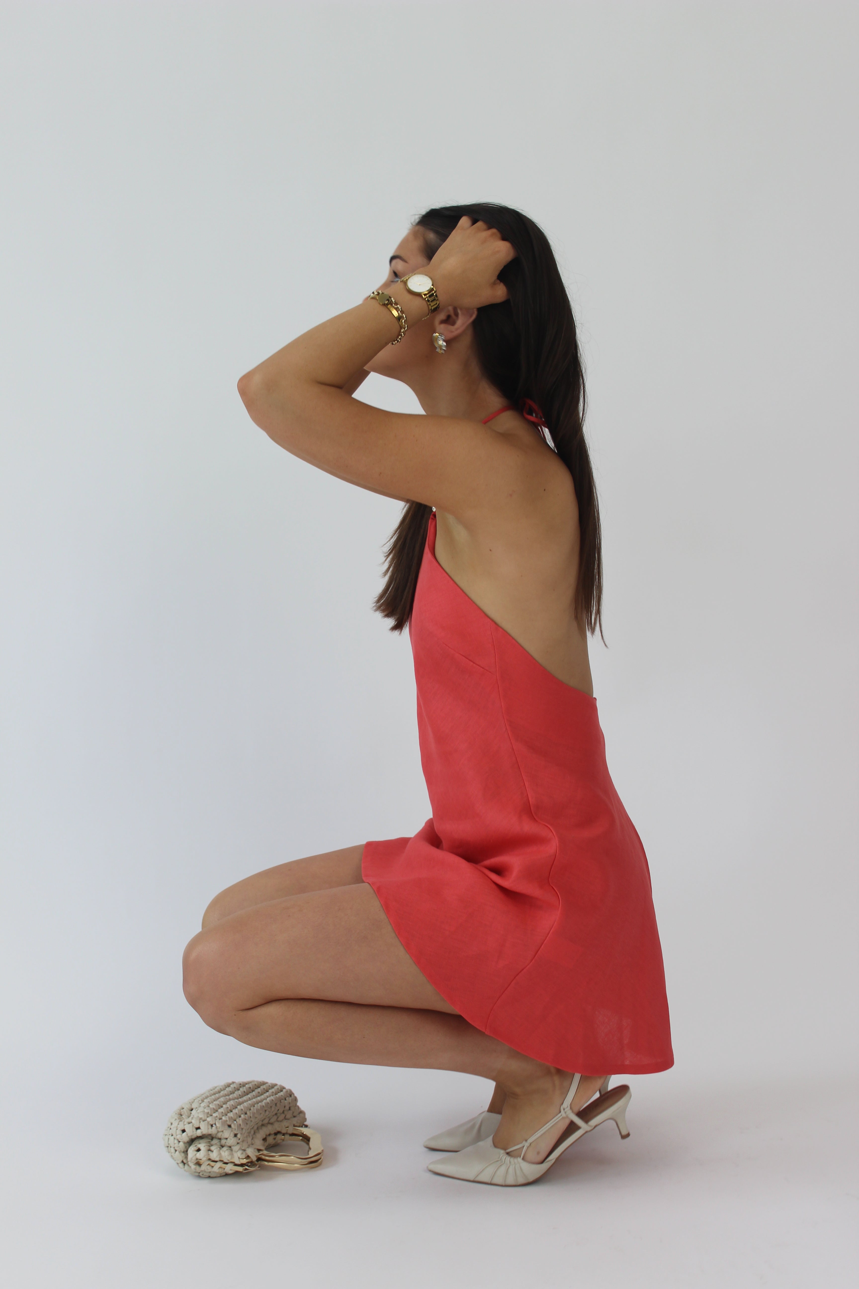 Introducing the Florence Dress, designed for both comfort and elegance. The halter neckline features European glass beads, adding a touch of sophistication. With its bias cut and A-line silhouette, this mini dress is extremely flattering and perfect for any occasion.